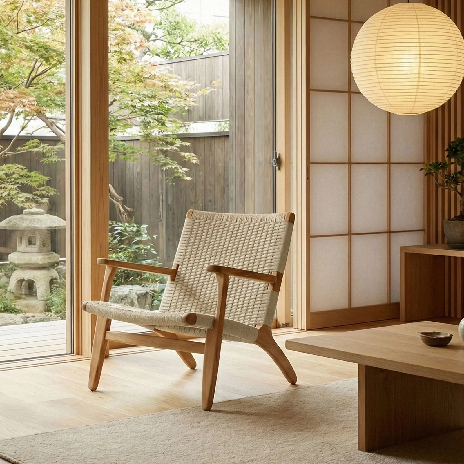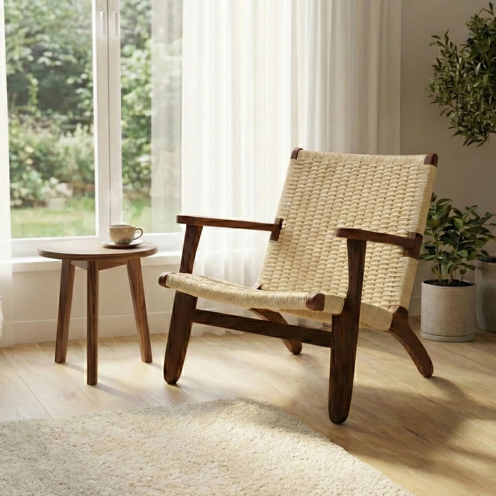 #ラウンジチェア#ミッドセンチュリー1人掛け#ペ一パ一コ一ドチェア#アームチェア#リラックスチェア #北欧インテリア #天然木#無垢材 #北欧風 #ナチュラル家具#寝室#ベランダ#ダイニング